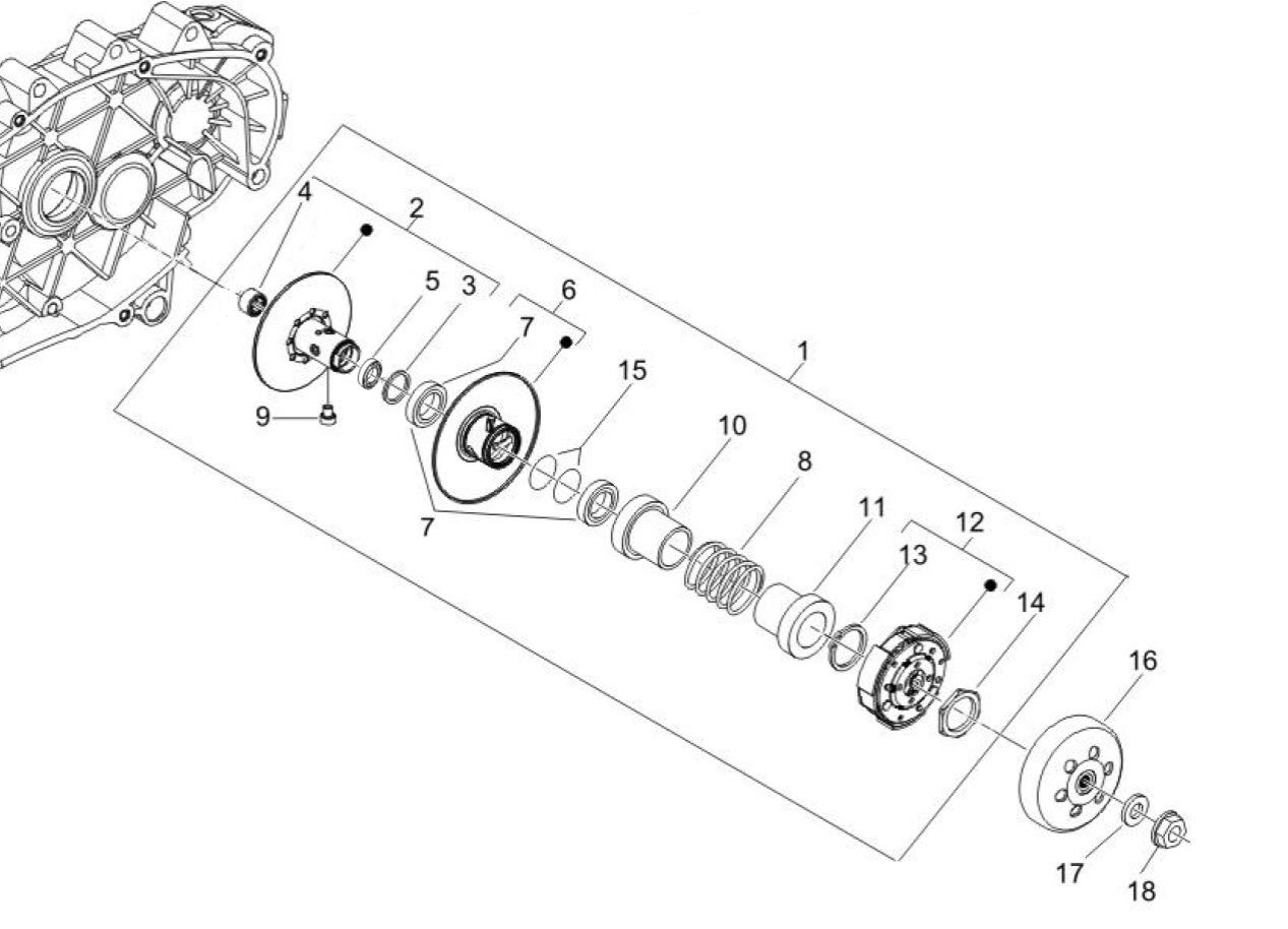 1 827982 CLUTCH WITH REAR PULLEYS ET4 S LX/LXV FLY LT 125-150 (830584 CM162402 82743R)