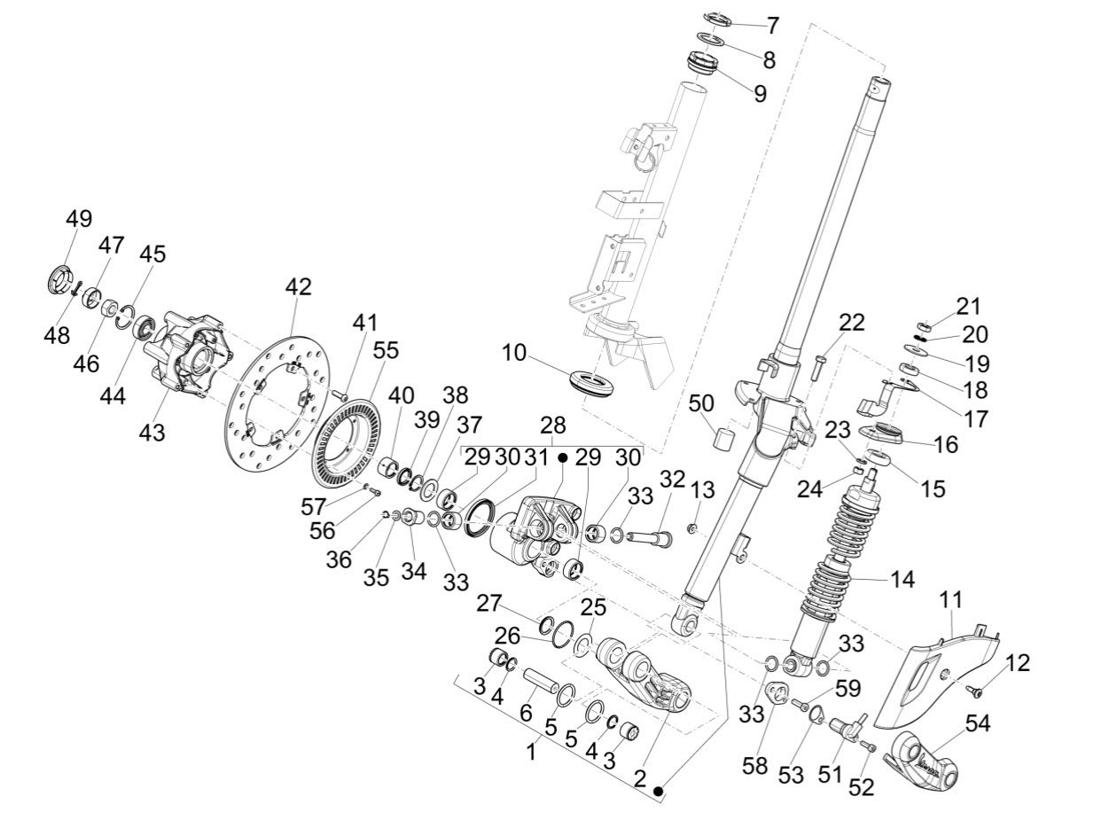 VESPA SPRINT & PRIMAVERA STEERING COLUMN FORK W/SUSPENSION ARM 2015-2016